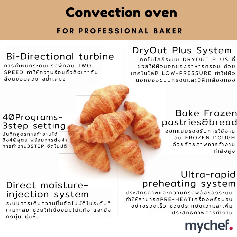 ระบบแรงลม 2 ทิศทาง สิทธิบัตรเฉพาะของ Mychef ทำให้สีของขนมและอาหารสม่ำเสมอ