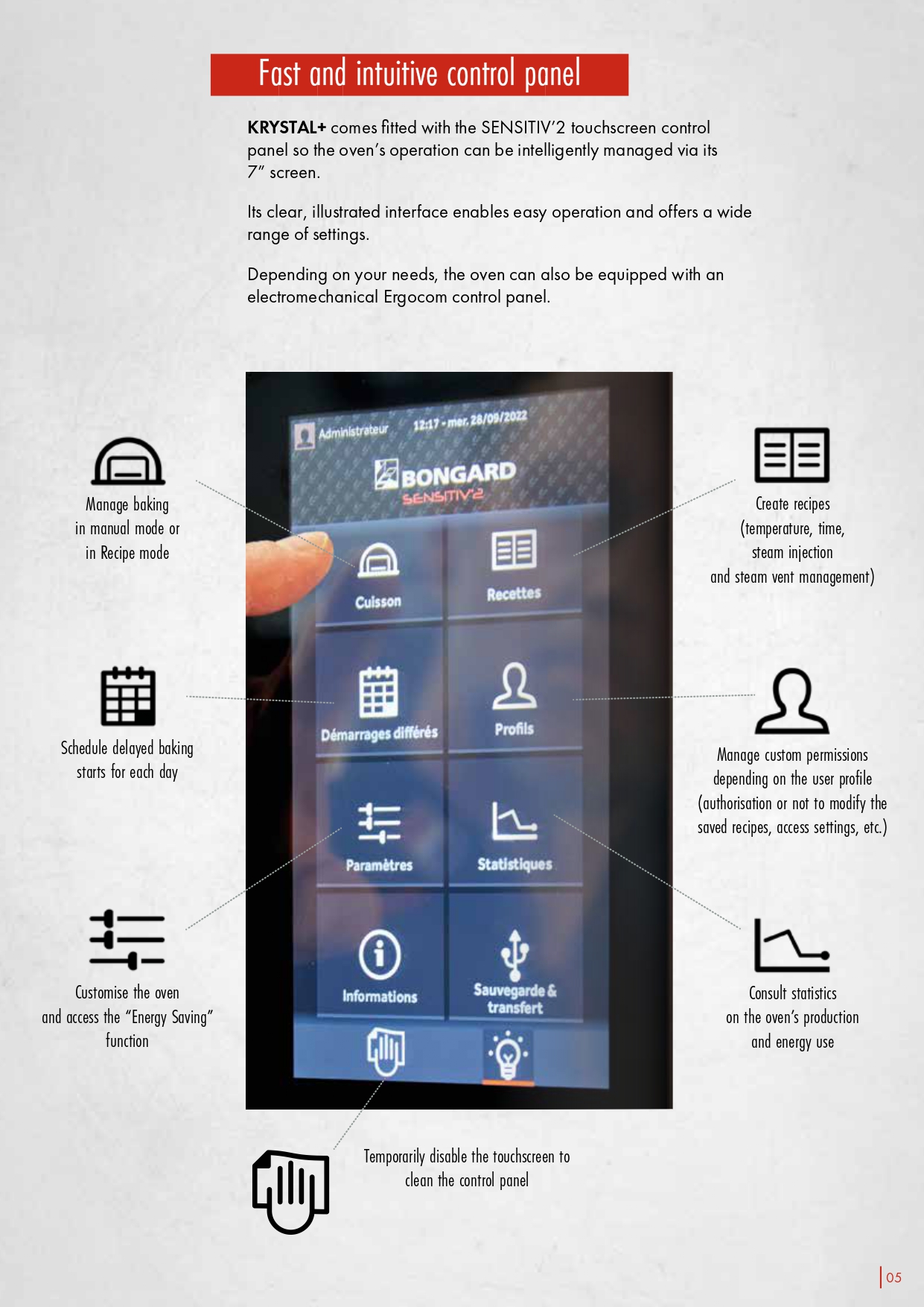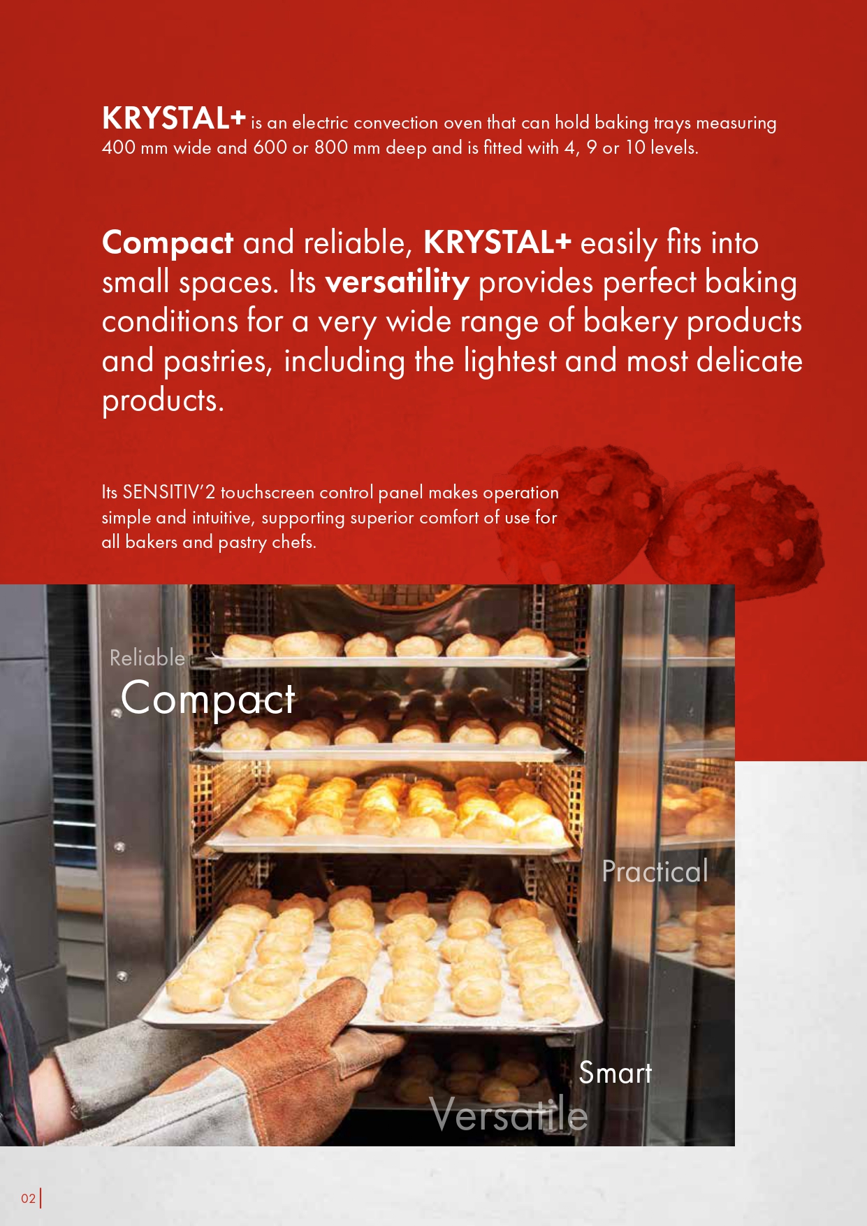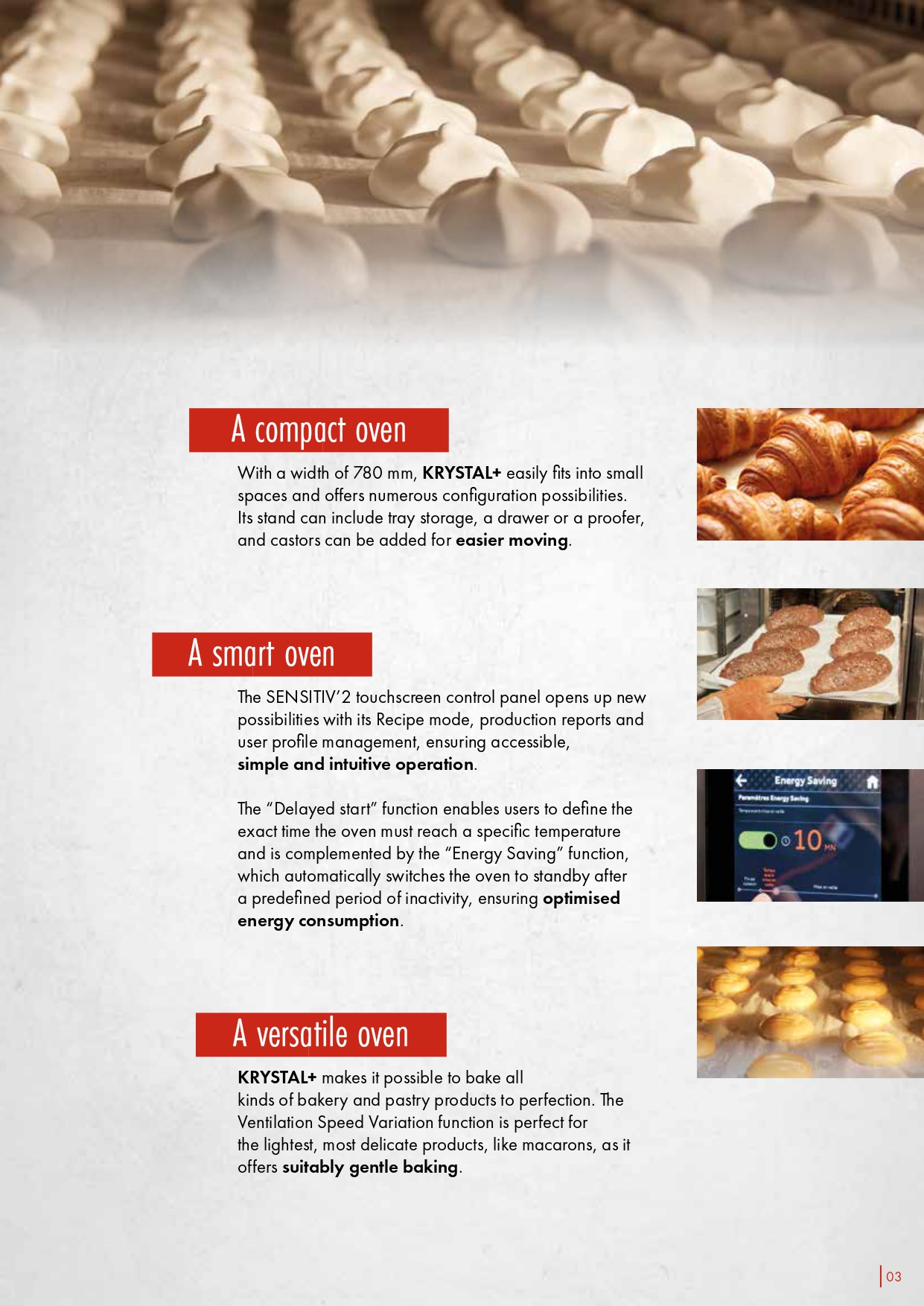 Convection oven Krystal Characteristics • 46.4, 46.9 for 400 x 600 pans • 48.4 and 48.9 for 400 x 800 pans • Number of decks : 4, 9 or 10 depending on models • Useful height of baking chamber : 600 or 800 mm