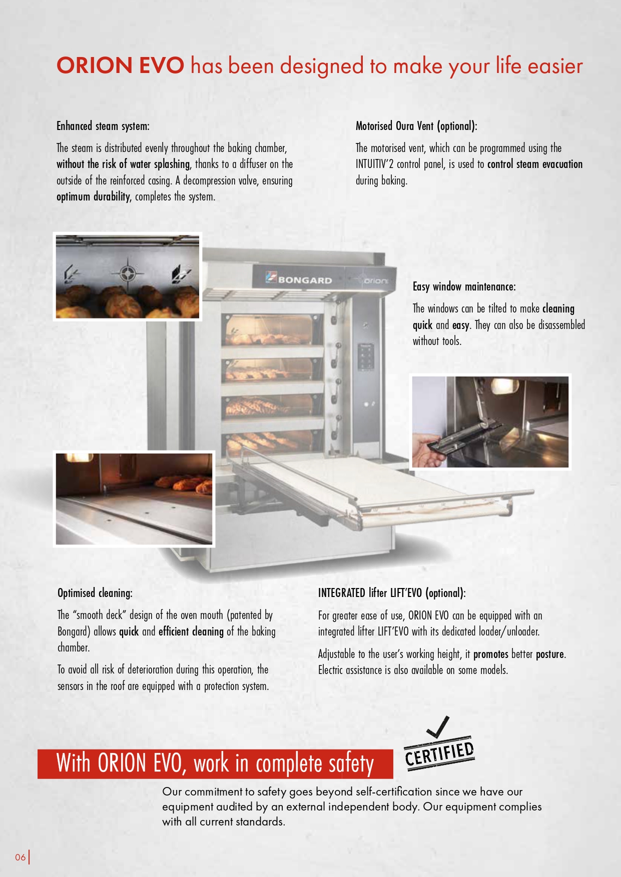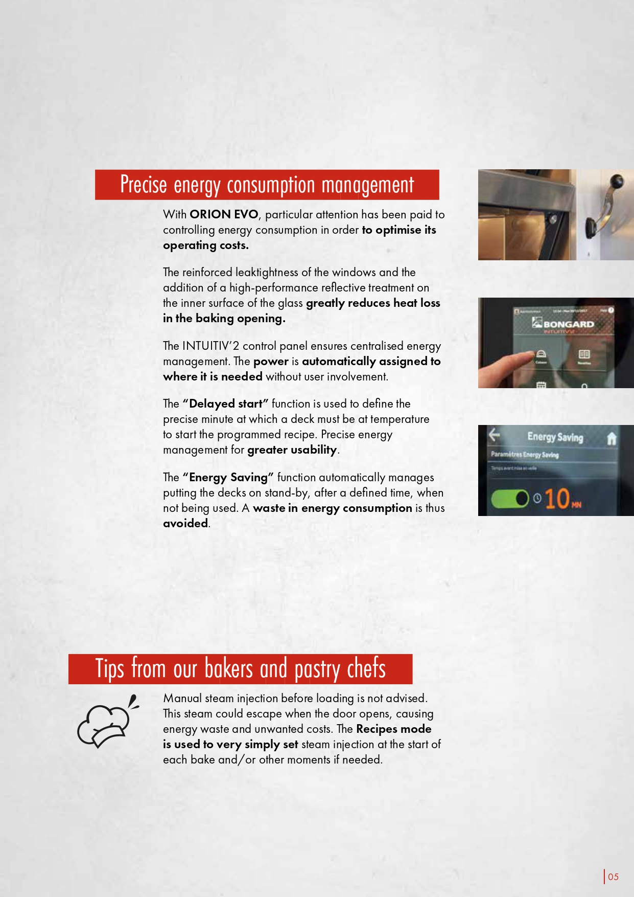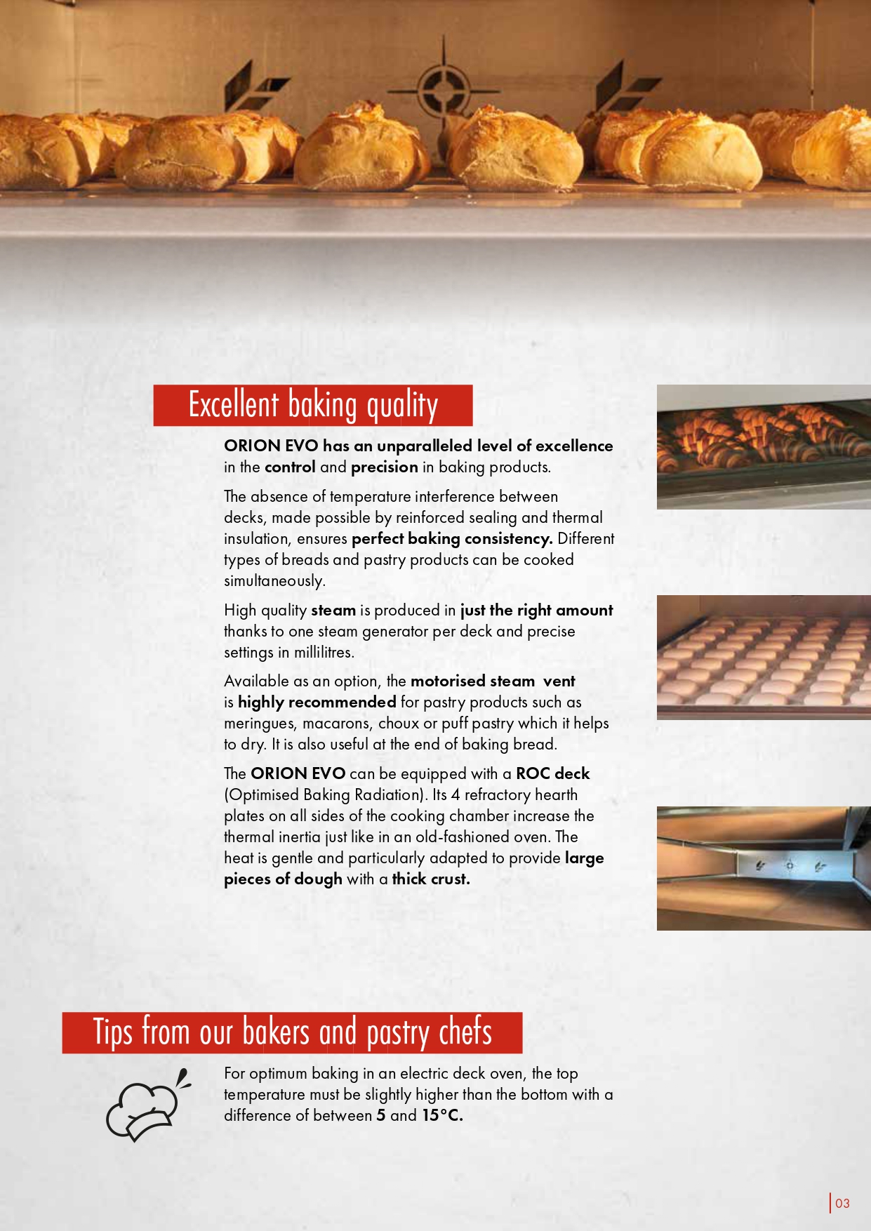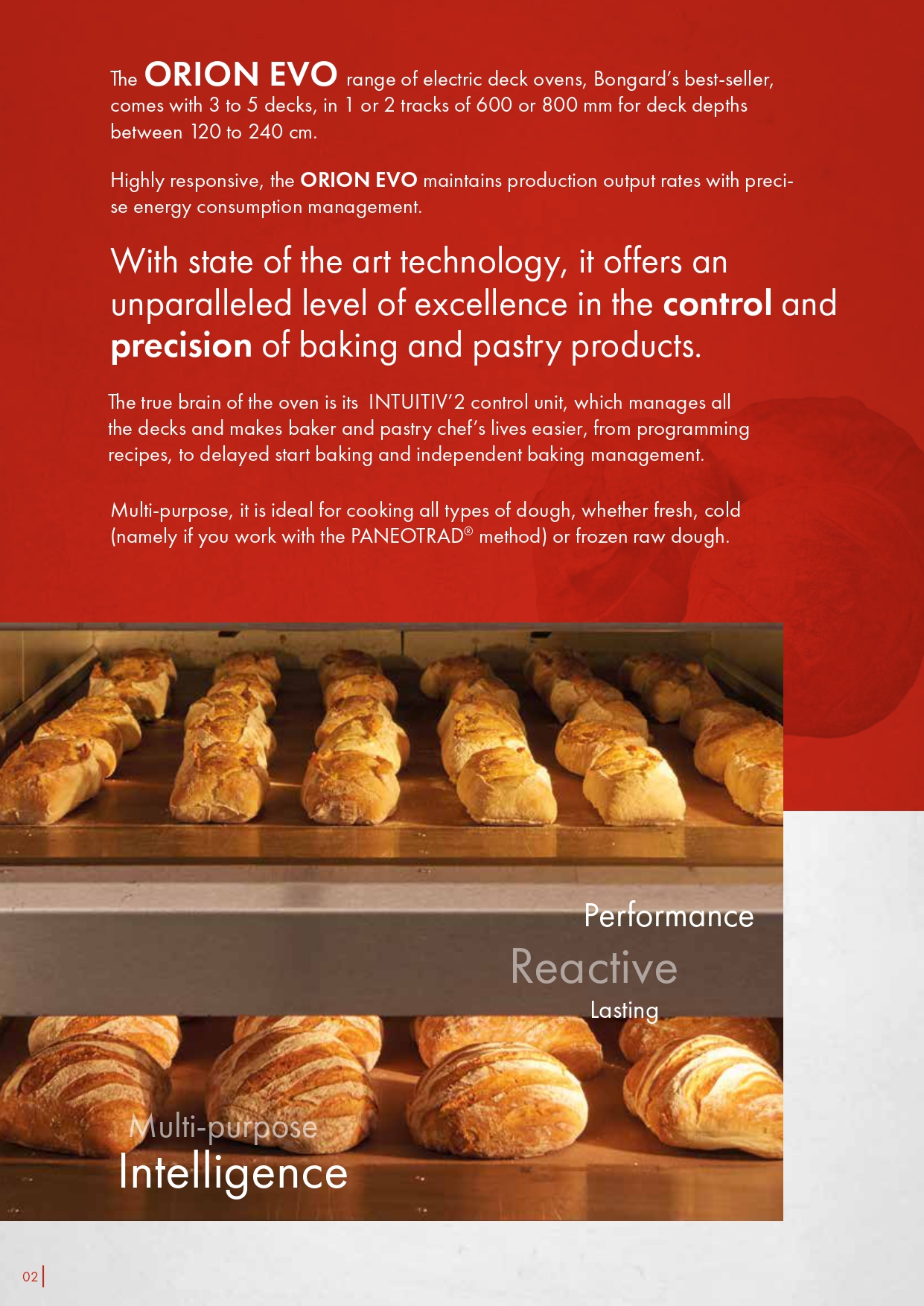 The ORION EVO range of electric deck ovens, Bongard’s best-seller, comes with 3 to 5 decks, in 1 or 2 tracks of 600 or 800 mm for deck depths between 120 to 240 cm.