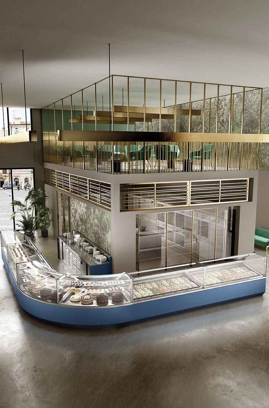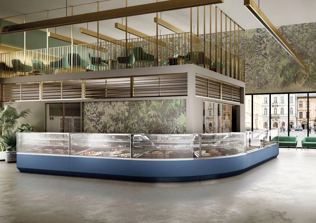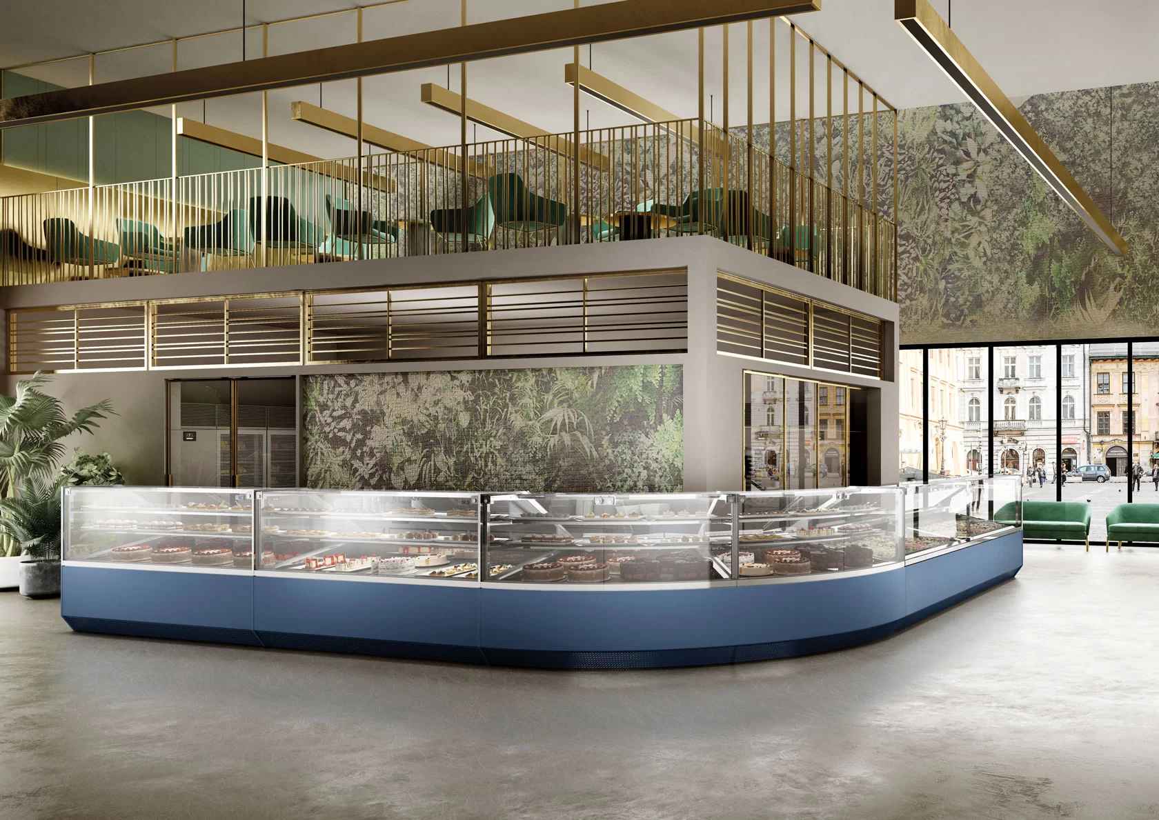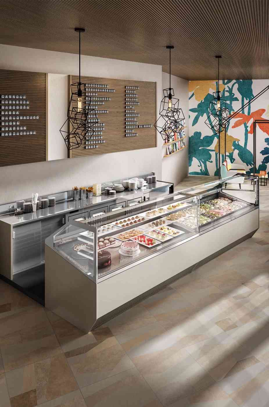 Possibility of continuous linear or corner channeling between the various ice cream and pastry display cases without having to resort to the side divider. Available in two different heights, 117 and 135 cm, and in three different lengths plus the corner, all of them able to be perfectly channelled together, Supercapri allows you to create continuity and integration in the entire composition of your shop. Even the shelves are channelled and integrated, enhancing the vision of the product and making your work more comfortable and ergonomic.