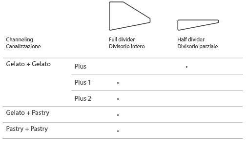 Plus 1 and Plus 2 configurations have an “intelligent” defrosting system which combines the work of two evaporators. In this way the standard defrosting time is reduced by 50%, minimizing thermal shock and preserving appearance and organoleptic characteristics of gelato.