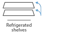 On request, shelves can be heated thanks to the heating function featuring a convenient on/off switch. Thanks to the heated shelves, for instance, baked products and croissants can be displayed at a ready-to-serve temperature.