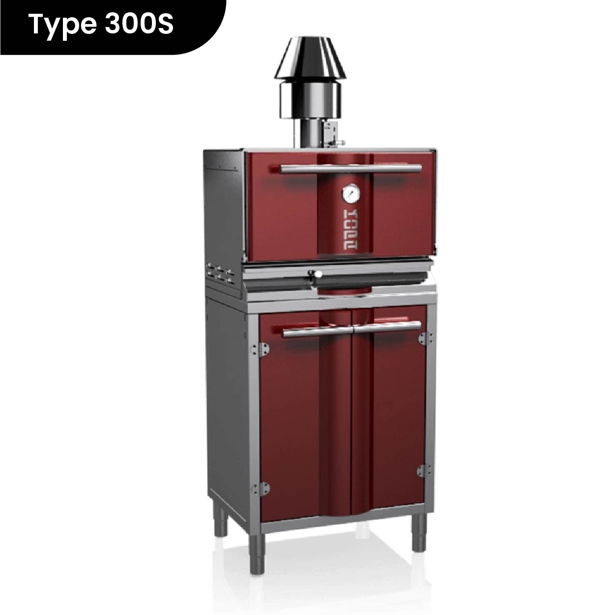The Kopa Charcoal oven is heated by burning charcoal inside the oven. The working temperature inside the oven is between 250ºC to 350ºC. This temperature is a combination between convection and radiation heat and the food inside the oven is roasted and grilled instead of baked.