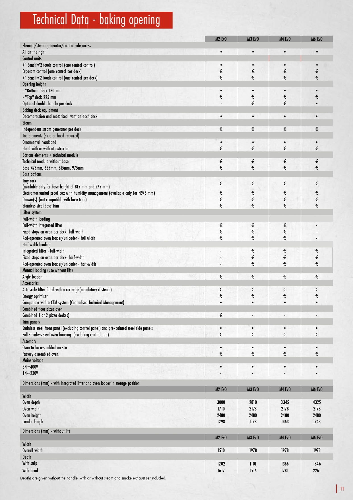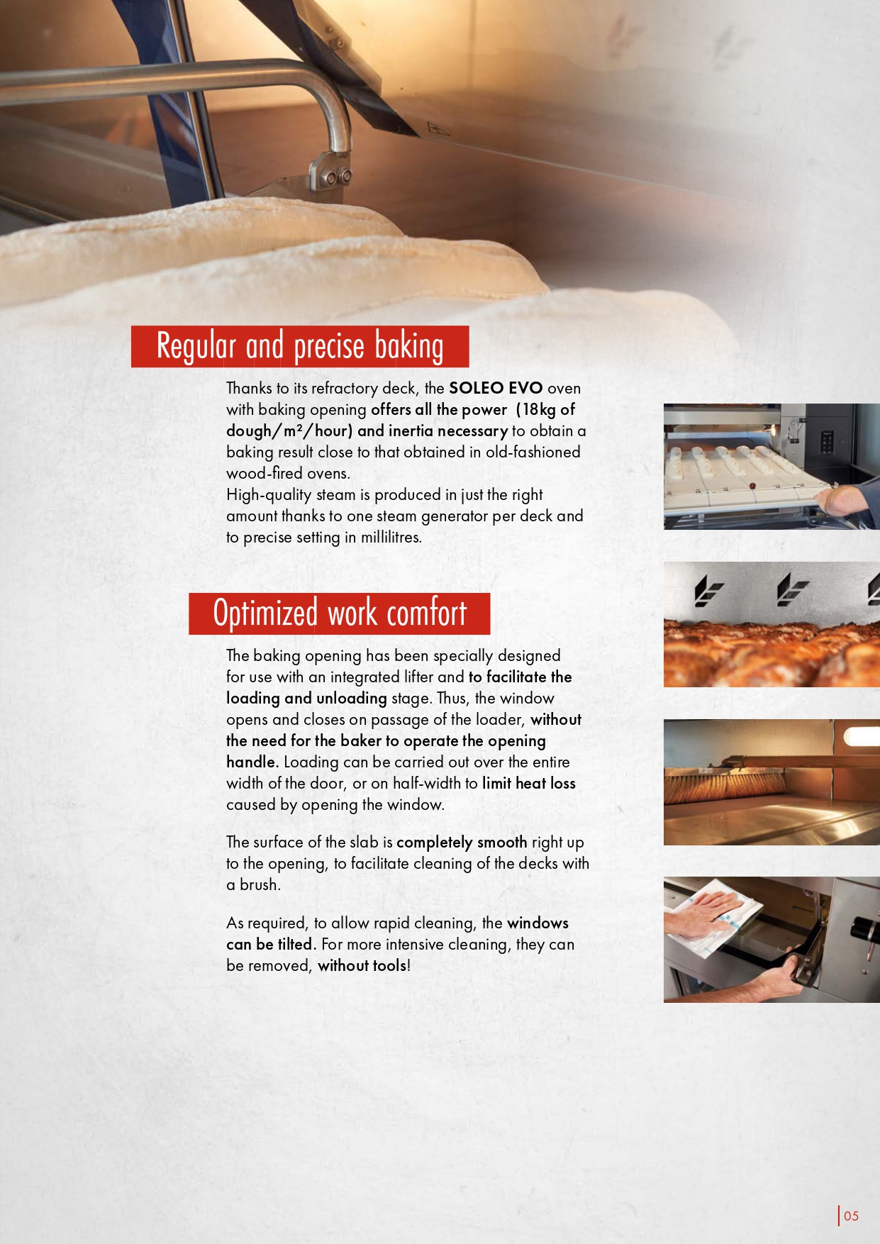 • Baking area: from 0,5 to 1,98 m² (per deck and depending on model)