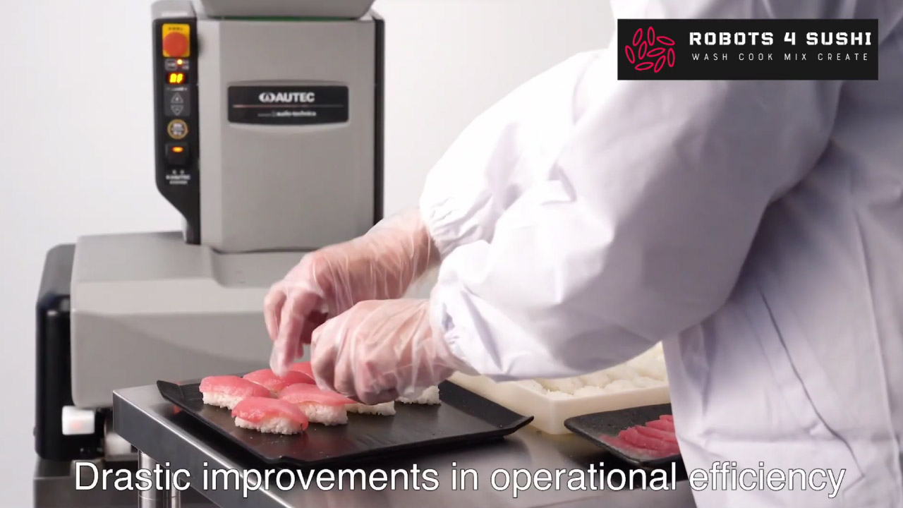 เครื่องปั้นซูชินิกิริอัตโนมัติ Autec แบรนด์ชั้นนำจากประเทศญี่ปุ่นกับครั้งแรกกับเครื่องปั้นซูชินิกิริอัตโนมัติที่ทำงานพร้อมกันได้ถึง 2 คน ทนทาน แข็งแรง ถูกออกแบบมาให้กะทัดรัดประหยัดพื้นที่ และขึ้นรูปข้าวปั้นด้วยความเร็วสูงสุด 4,200 ลูก/ชั่วโมง ตามรูปทรงที่กำหนด ปริมาณคงที่ รูปทรงสวยงาม Perfact เหมือนกันทุกชิ้น ทำให้เมนูอาหารของคุณ premium น่ารับประทาน และ operation ง่าย สะดวกรวดเร็ว ผลิตได้เพียงพอต่อความต้องการของลูกค้า