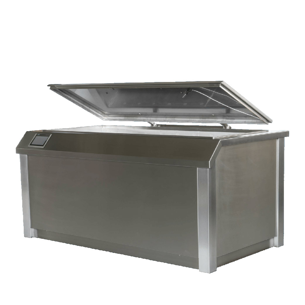 เครื่อง Sous Vide ซูวี รูปแบบอุตสาหกรรมที่เหมาะกับการผลิตใน scale ใหญ่ มีทั้งระบบ Water Bath ที่ทำอาหารเป็นรอบหรือ Continuous ที่ทำอาหารอย่างต่อเนื่องตลอด ออกแบบตามขนาดที่คุณต้องการ