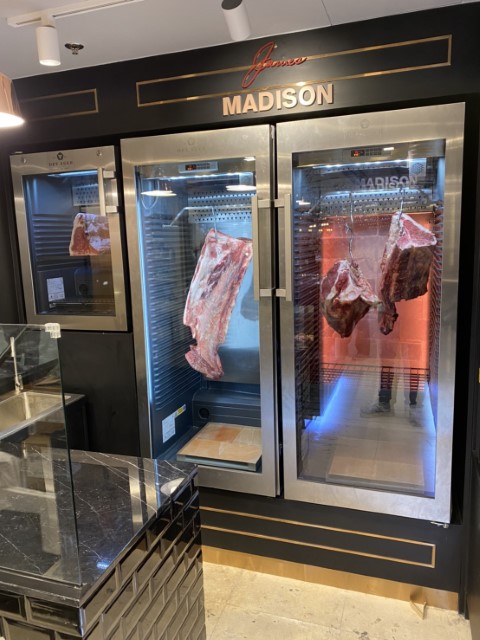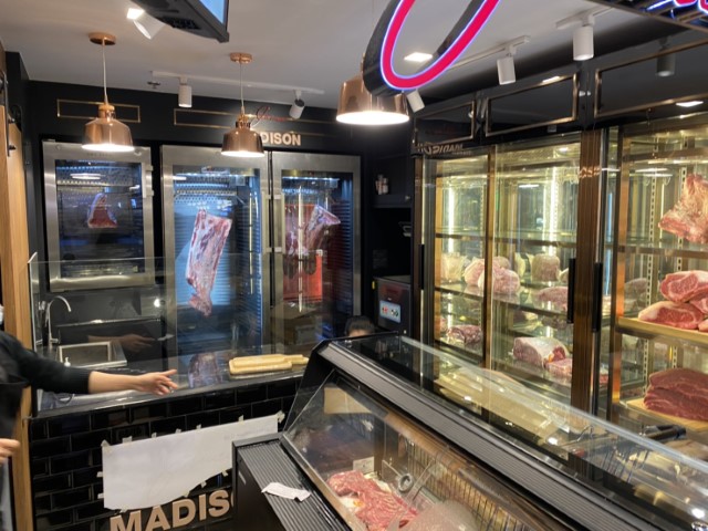 ทางเราจึงมีไอเดียเรื่อง Meat Bank ซึ่งค่อนข้างเป็นที่แพร่หลายในแถบยุโรป conceptคือ ลูกค้าสามารถแวะเวียนมาเลือกซื้อเนื้อได้ในลักษณะของเนื้อชื้นเล็กที่หั่นแล้วเพื่อนำกลับไปรับประทาน หรืออาจจะมีการซื้อยกชิ้นใหญ่เพื่อฝากไว้กับทางร้านเพื่อเป็นการบ่มเนื้อ(Dry Aged) ภายหลังลูกค้าสามารถแวะเวียนมารับเนื้อที่ฝากไว้เพื่อนำกลับไปรับประทาน ซึงตอบโจทย์ในเรื่องของ Life Style ที่อยู่อาศัยแบบครอบครัวเดี่ยวและอาจมีพื้นที่จำกัดในการเก็บรักษาวัตถุดิบ ทั้งยังมีความพิถีพิถันในเรื่องการรับประทานอาหารอีกด้วย โดยลูกค้าสามารถเลือกสรรวัตถุดิบตามที่ต้องการและวางแผนระยะเวลาในการบ่มได้ด้วยตนเองตามความชื่นชอบส่วนตัว สำหรับข้อจำกัดเรื่องพื้นที่ ทางเราจึงนำเสนอเป็นตู้บ่มเนื้อแบบ cabinet ที่สามารถวางลอย หรือbuilt-in ซึ่งมีความจุสูงถึง 100kg/ตู้ (DX1000P) โดยมรการติดตั้งเครื่อง Dry Ager DX1000P จำนวน 2เครื่อง ปละ DX500P จำนวน 1เครื่อง นอกจากจะเป็นทางเลือกที่ใช้พื้นที่น้อยแล้วยังช่วยให้เราสามารถบ่มเนื้อหลายประเภทในเวลาเดียวกันได้ เช่น Dry Aged beef/pork/poultry/seafood/salami ทำให้ตอบโจทย์ความต้องการของลูกค้าได้หลากหลาย และด้วยเทคโนโลยีของ Dry Ager ยังทำให้การสูญ.เสียน้ำหนักระหว่างการบ่มน้องกว่าการบ่มแบบทั่วไปถึง3เท่าอีกด้วย
