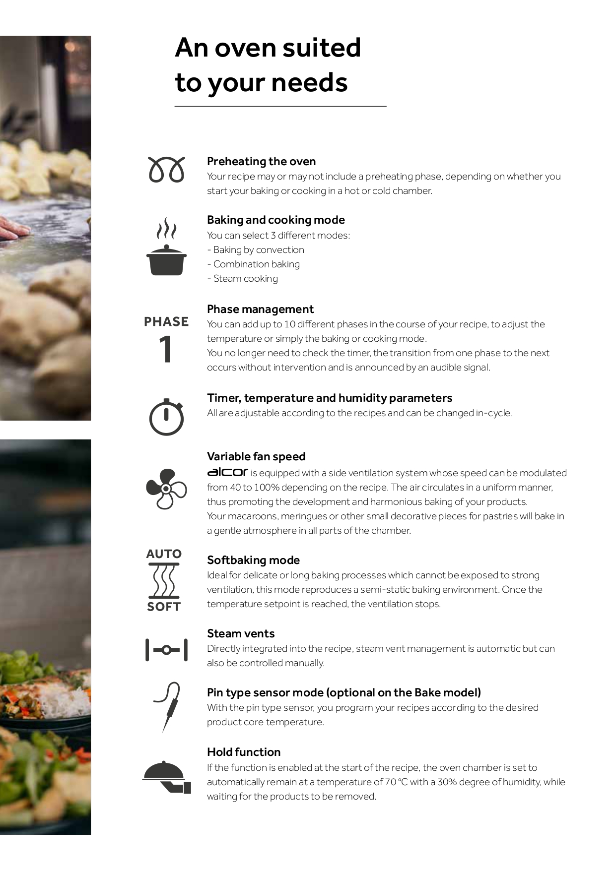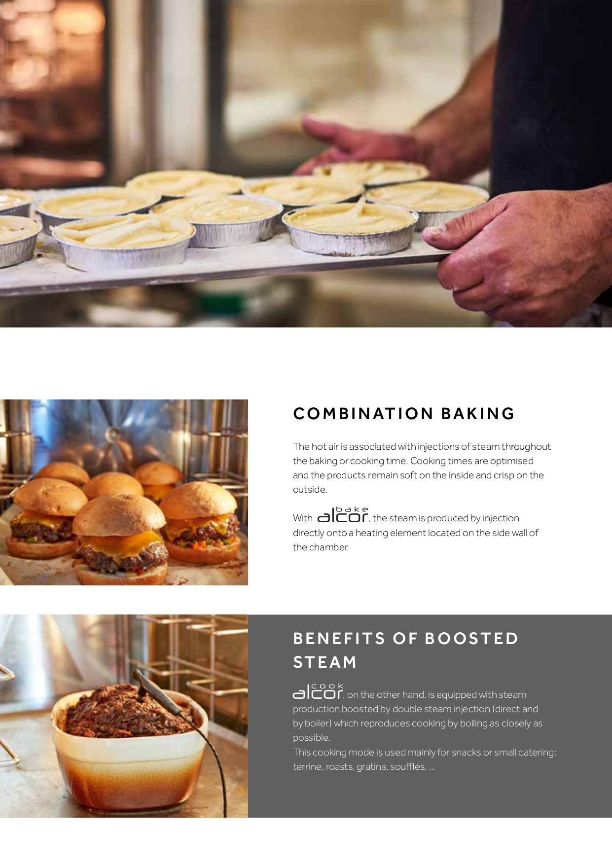 The convection combi oven Alcor Bake is dedicated to prebaked bakery products, pastries, Danish but also snacking products and catering offer cooked on-site.