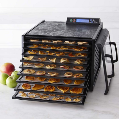 เครื่องอบลมร้อน Dehydrator รุ่น Excalibur 9 ถาดพร้อมตะแกรงตาข่ายปลอดสาร BPA พื้นที่อบ 15 ตารางฟุต ตัวจับเวลาดิจิตอล 48 ชั่วโมงพร้อมการตั้งค่าอุณหภูมิ 2 เวลา / บานประตูใสเพื่อดูความคืบหน้าในการอบแห้งได้ง่าย ช่วงอุณหภูมิที่ปรับได้ตั้งแต่ 35°C ถึง 73°C , พัดลมขนาด 7 นิ้ว เพื่อการไหลเวียนของลมร้อนที่ดีเยี่ยม ง่ายต่อการใช้. รวมคู่มือการคายน้ำและถนอมอาหารตามธรรมชาติ เพื่อให้คุณสามารถเรียนรู้วิธีดึงความชื้นออกจากอาหาร
