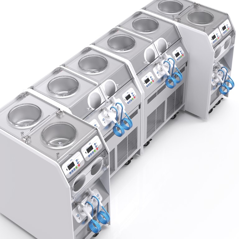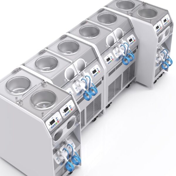 Each module consists of two cylinders that independently produce and statically store gelato. Furthermore, each cylinder has its own consistency and storage temperature settings to best produce every single flavor.