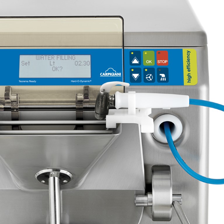 • Carpigiani’s High Efficiency technology allows a reduction in production time and the consumption of electricity and water up to 30% compared to Carpigiani batch freezers of previous generations (30% compared to RTX models).