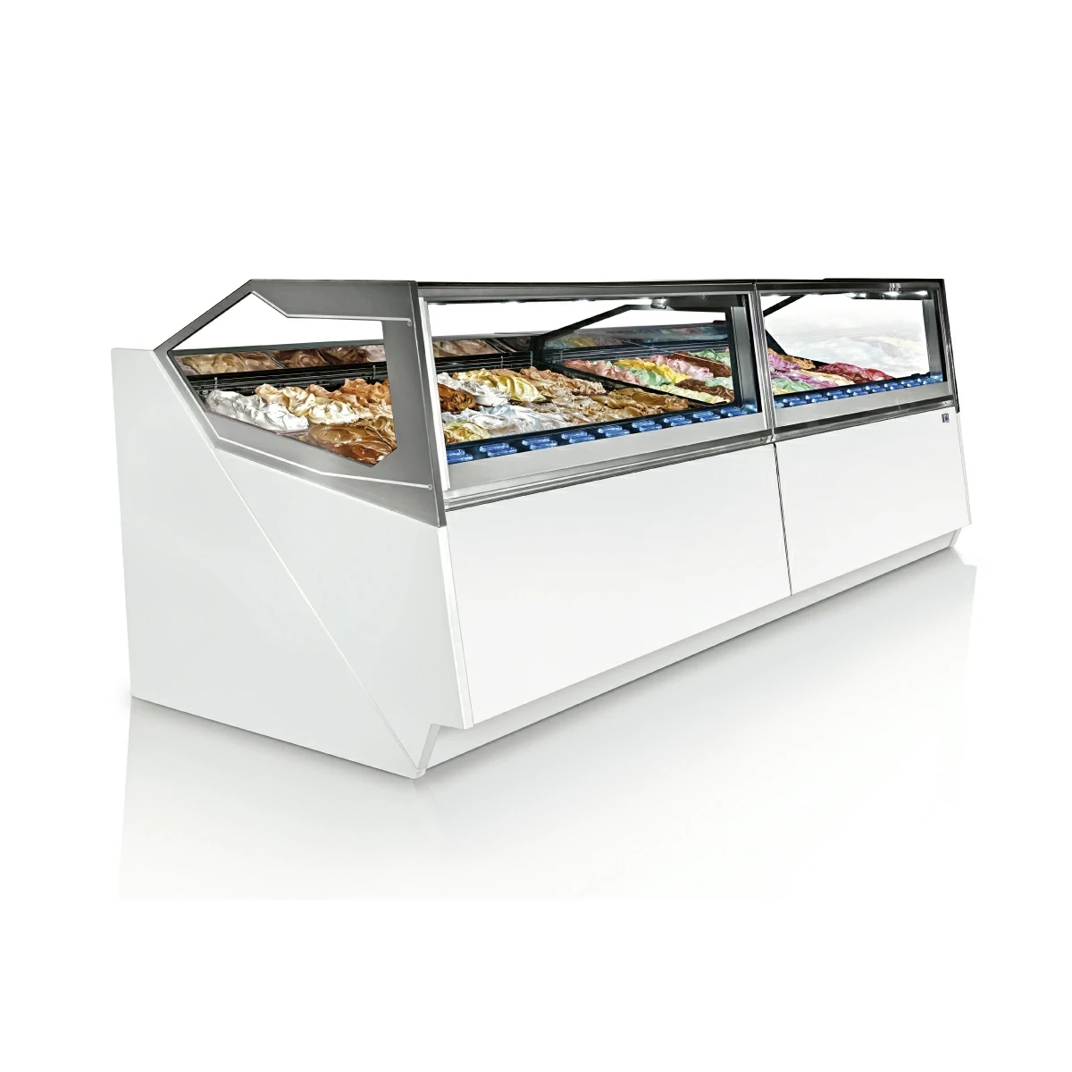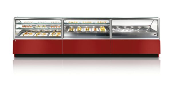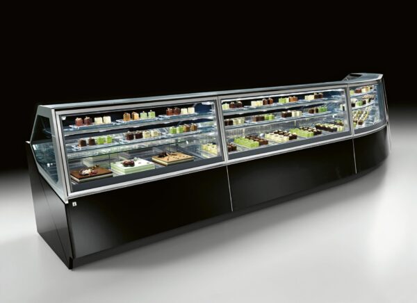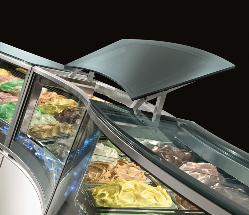 Moreover, in the Gelato and Gelato/Pastry services, Cubika is equipped with the Acoustic Comfort System: a system allowing an impressive 3 decibel reduction in the noise produced by the display case, taking it from 59 to 56 decibels. Acoustic Comfort Systemmeans the well-being and health of operators, but also care for Customers who are welcomed in a more comfortable and relaxing environment.