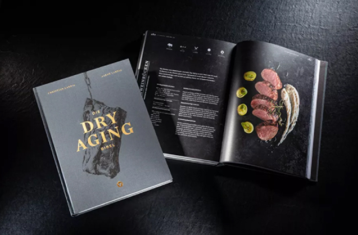 The 336 pages bound in fine linen will teach you everything you need to know about Dry Aging and refining. This book explains the history and present-day practice of Dry Aging down to the last detail, including scientific ones. With stunning photographs, it shows hundreds of examples of meat refining, the production of world-famous hams and salamis, the aging of cheese, and the refinement of fish. With detailed information and concrete recommendations. You can turn your Dry Aging successes into culinary highlights with numerous recipes from famous chefs.