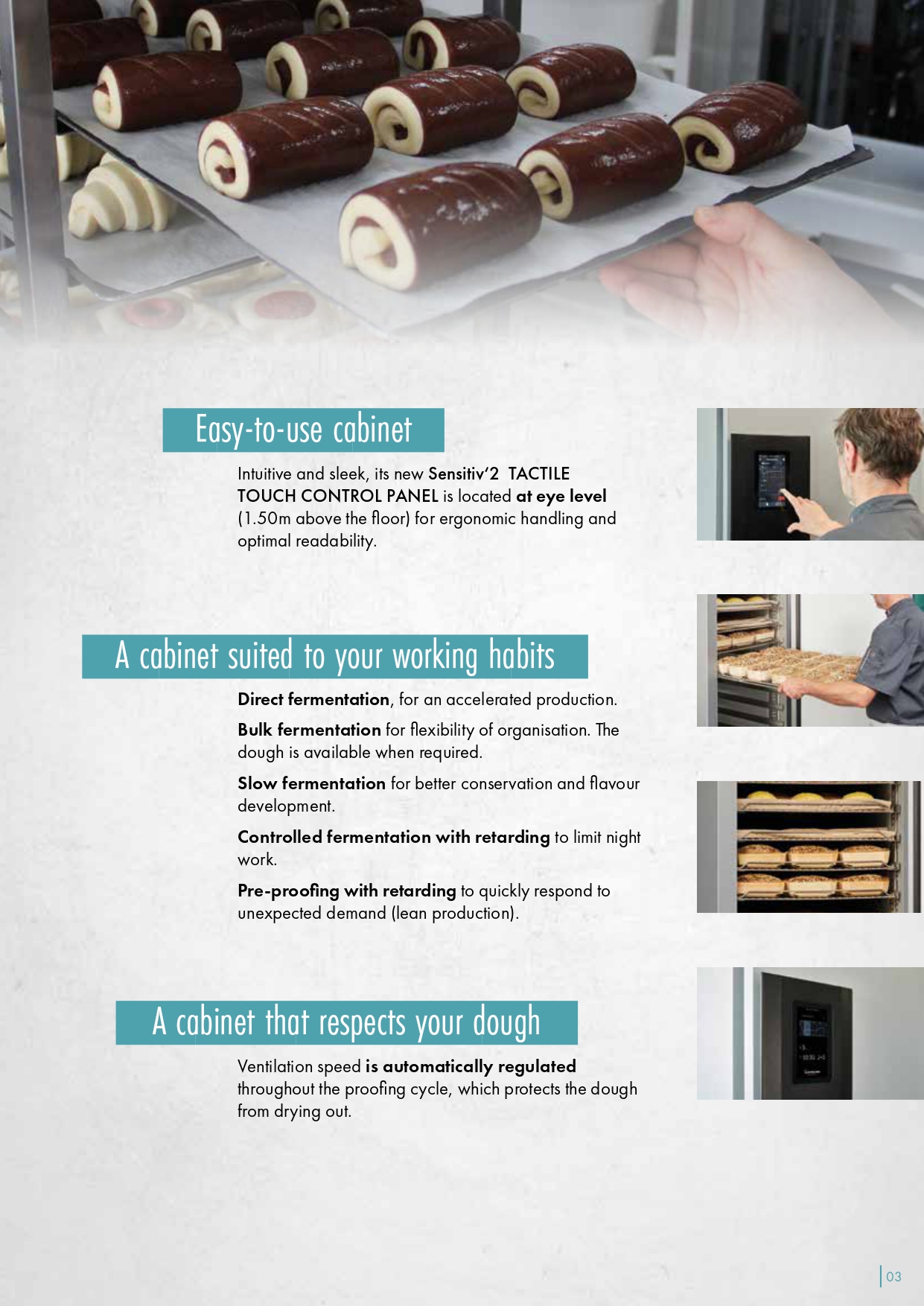 With its SENSITIV’2 touchscreen control panel, HERA adapts to the working habits of all bakers and guarantees consistent production.