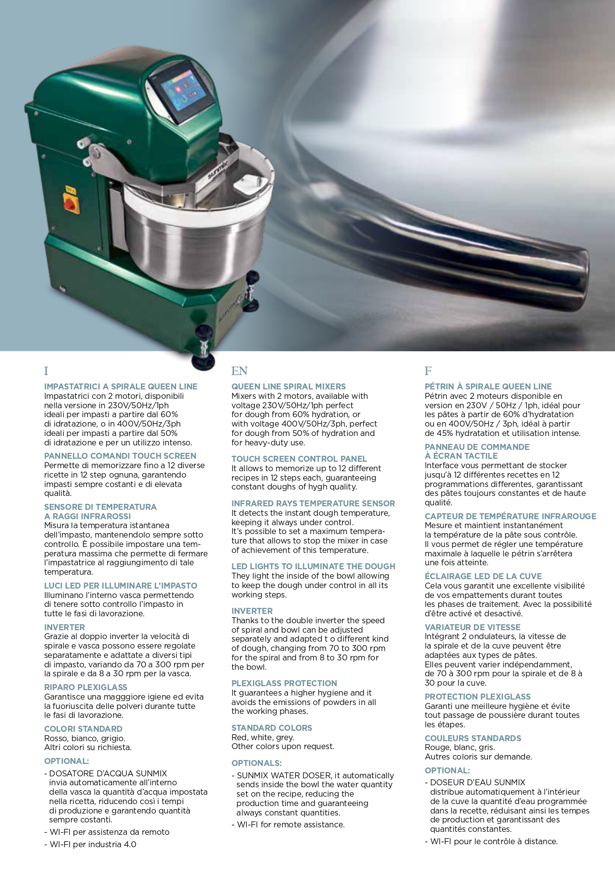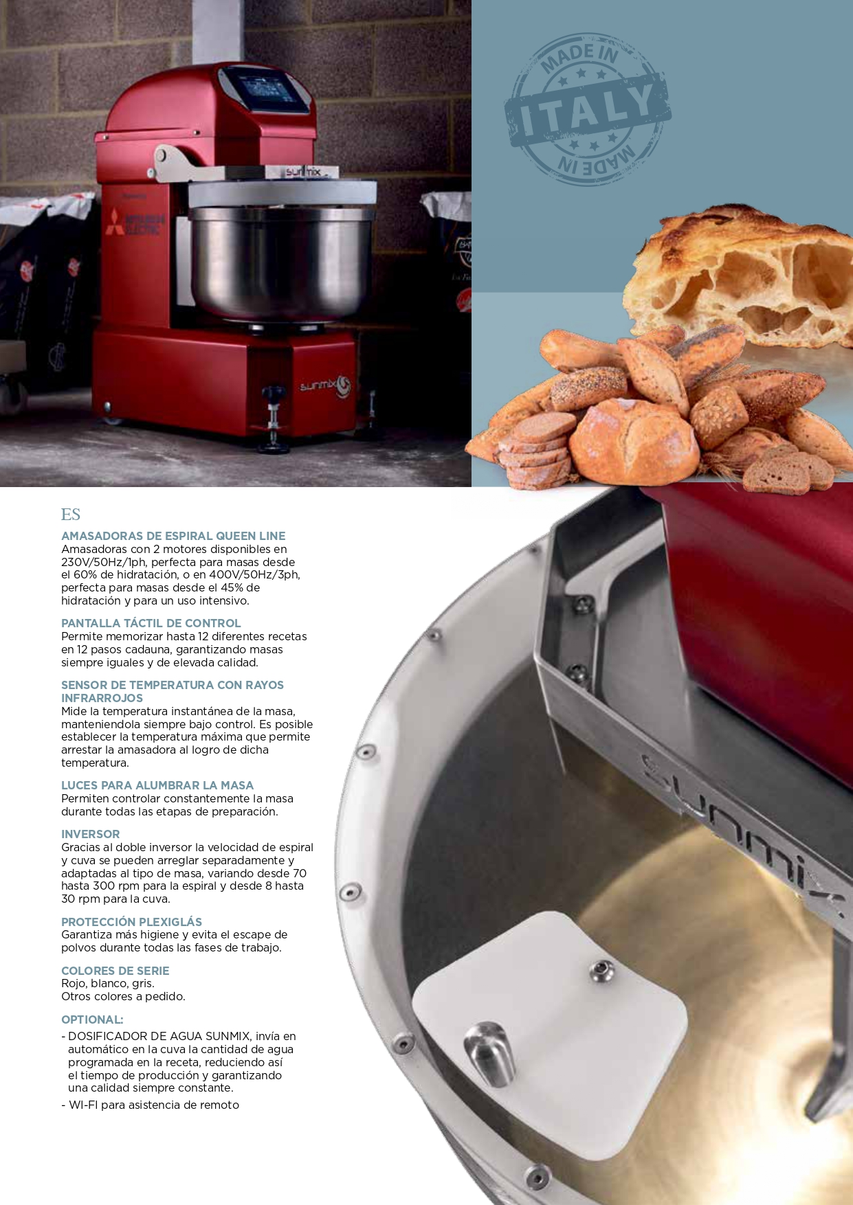 Sunmix รับประกันคุณภาพสินค้าและความสมบูรณ์แบบระหว่างความน่าเชื่อถือ ความทนทาน และประสิทธิภาพ รวมไปถึงความสวยงามเป็นองค์ประกอบ ใช้สำหรับนวดแป้งและส่วนผสมต่างๆ ให้เป็นเนื้อเดียวกันตัวแป้งที่ได้จะมีความเนียนละเอียด ทำให้แป้งที่ได้มีคุณภาพสูง พร้อมบริการหลังการขายโดยผู่ชำนาญการ ตัวแทนอย่างเป็นทางการประเทศไทย
