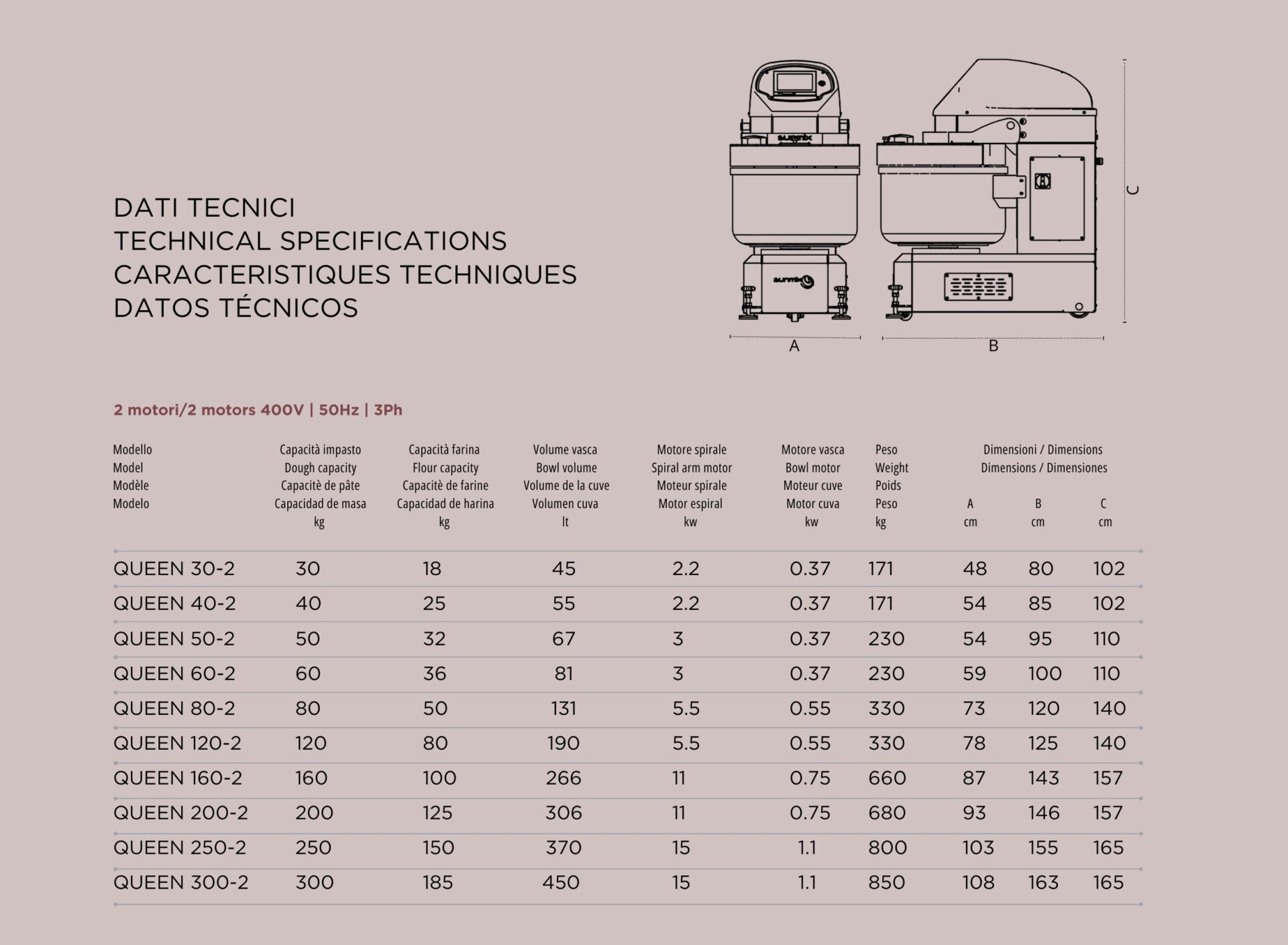 It detects the instant dough temperature, keeping it always under control. It’s possible to set a maximum temperature that allows to stop the mixer in case of achievement of this temperature.