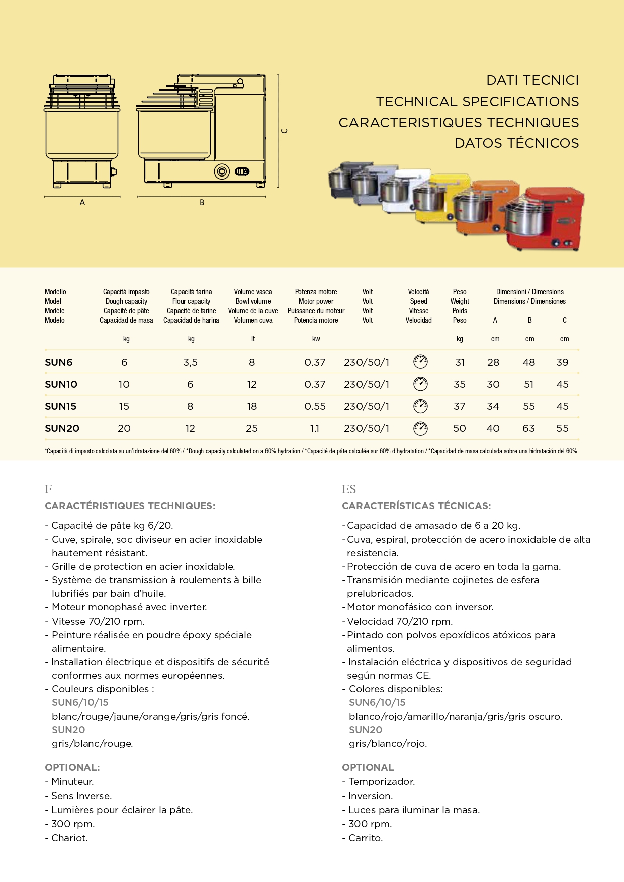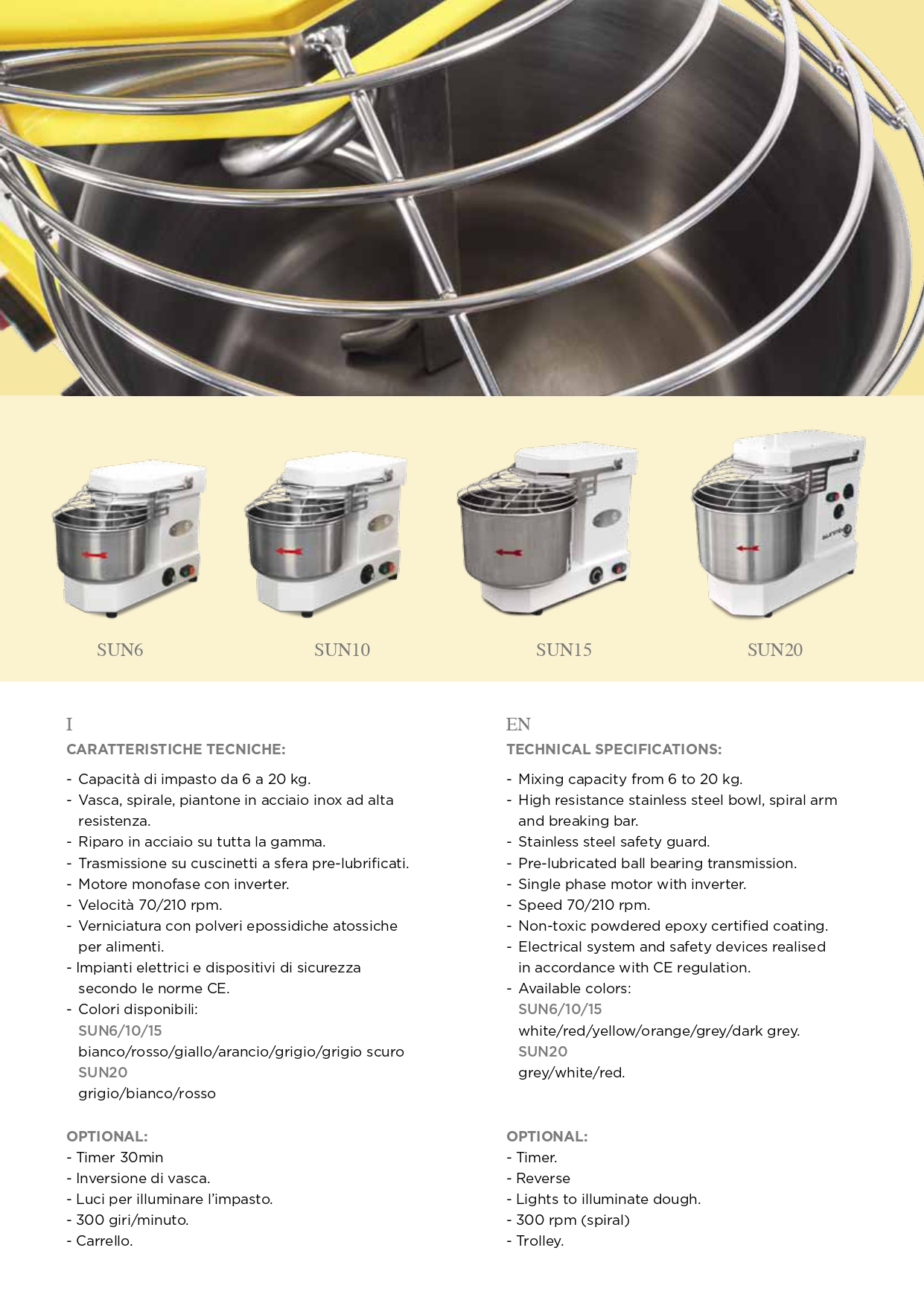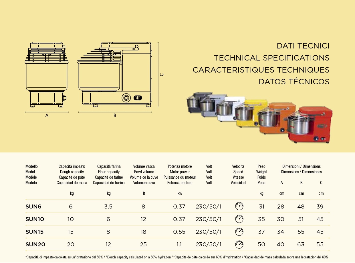 Sunmix รับประกันคุณภาพสินค้าและความสมบูรณ์แบบระหว่างความน่าเชื่อถือ ความทนทาน และประสิทธิภาพ รวมไปถึงความสวยงามเป็นองค์ประกอบ ใช้สำหรับนวดแป้งและส่วนผสมต่างๆ ให้เป็นเนื้อเดียวกันตัวแป้งที่ได้จะมีความเนียนละเอียด ทำให้แป้งที่ได้มีคุณภาพสูง พร้อมบริการหลังการขายโดยผู่ชำนาญการ ตัวแทนอย่างเป็นทางการประเทศไทย